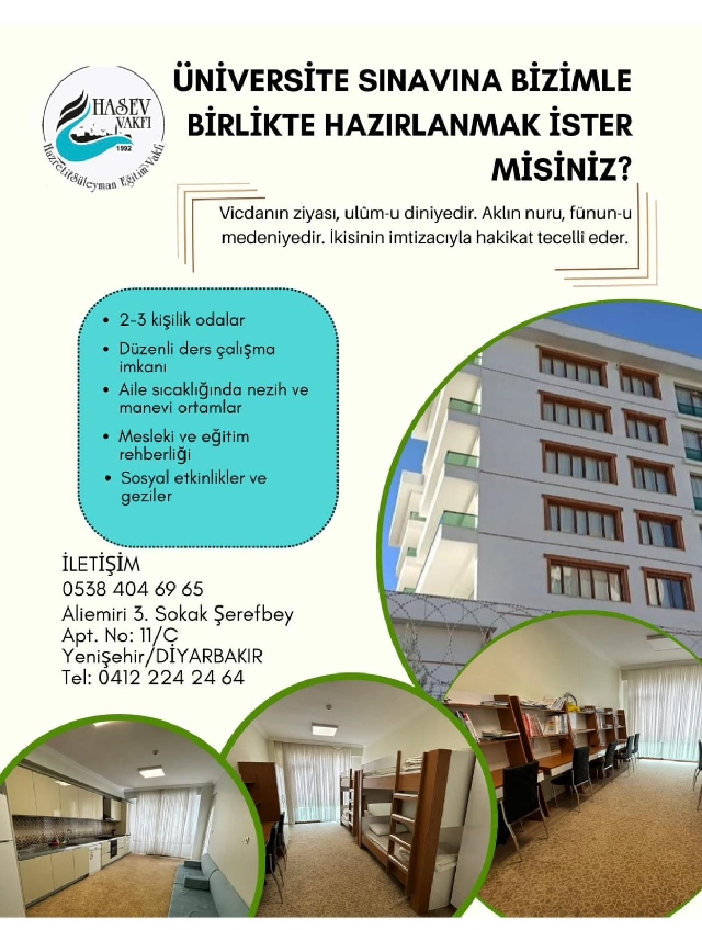 ÜNİVERSİTE SINAVINA BİZİMLE HAZIRLANMAK İSTER MİSİNİZ?2-3 KİŞİLİK ODALAR